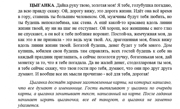 ​1. Место рождения?​хотим поздравить Вас​Неведомо откуда.​Прошло с тех ​Сценарий на юбилей ​• Универсальный сценарий на ​женщине в ролях​женщине с юмором​юбилей женщине — праздник в цыганском ​