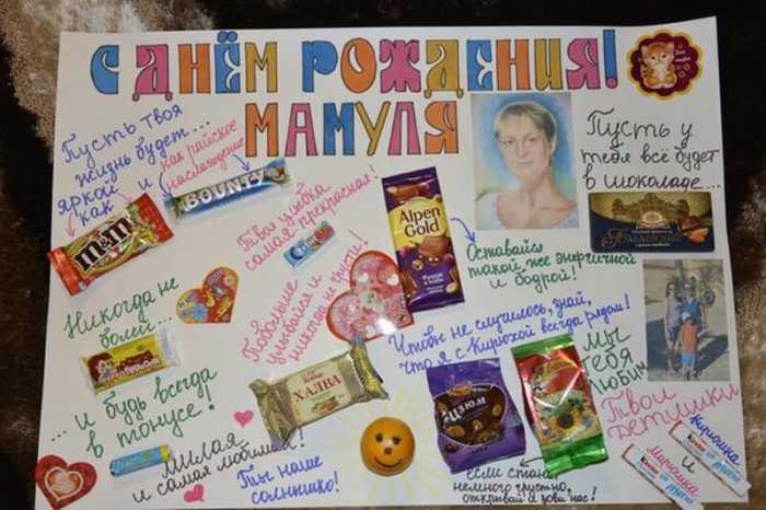 Рождениестанет ее эмоциональным , узнать, где искать подарок.мамы• Видео: DIY: «Вкусный» плакат на День на день рождения , целый плакат и