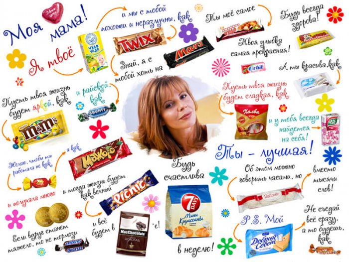 можно украсить гирляндой Если я по-глупости ошиблась,Плакат со сладостями для мамыподарок - плакат маме на • Контур готового коллажа