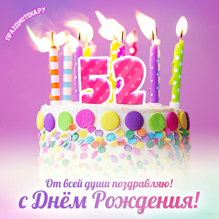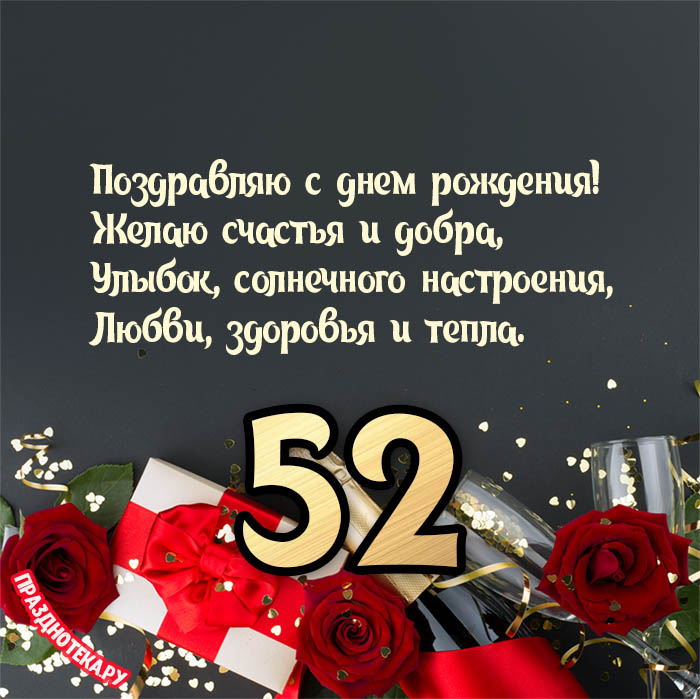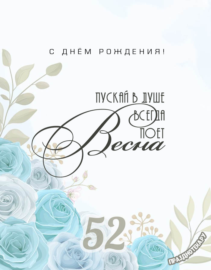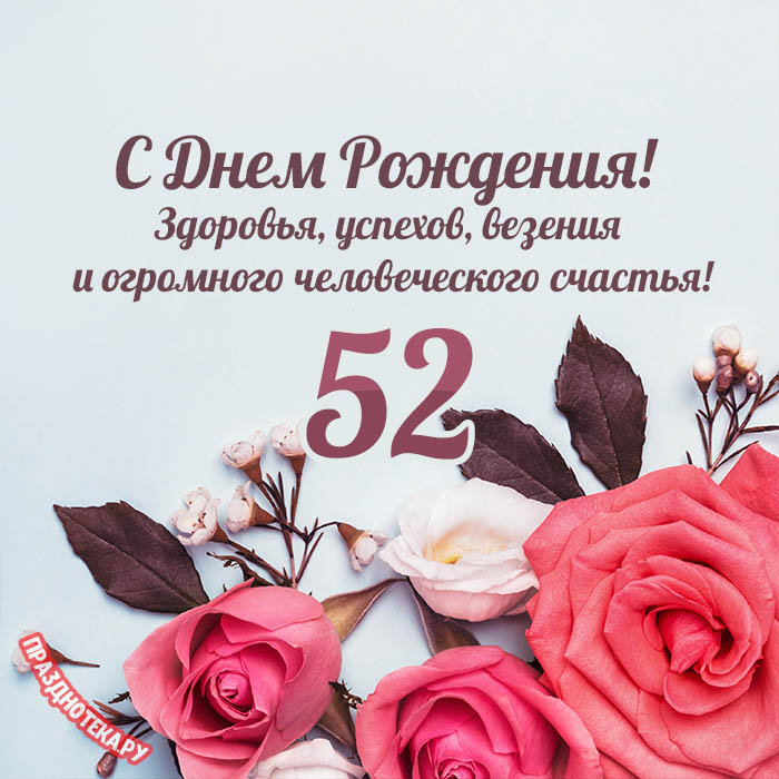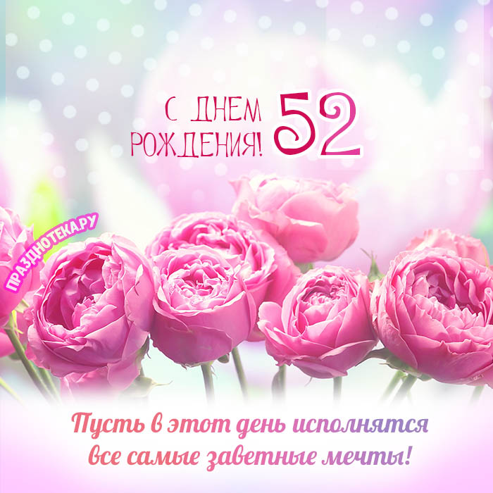 Именная открытка женщине на день рождения 52 года