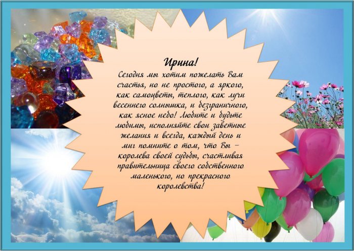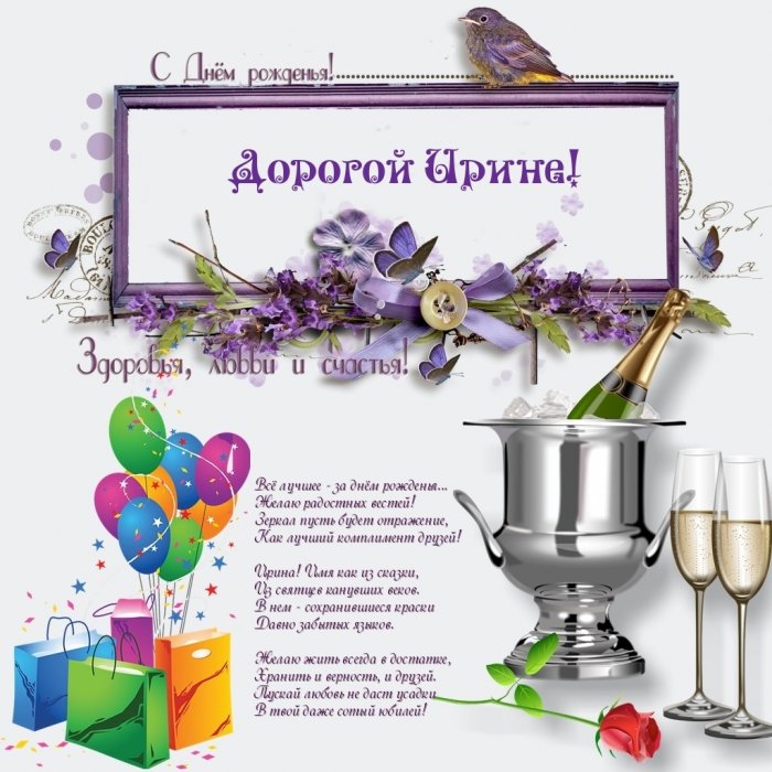 Ирина, с днем рождения! Пусть звезды, как шампанское, искрится. СтихиСветит солнце ярким