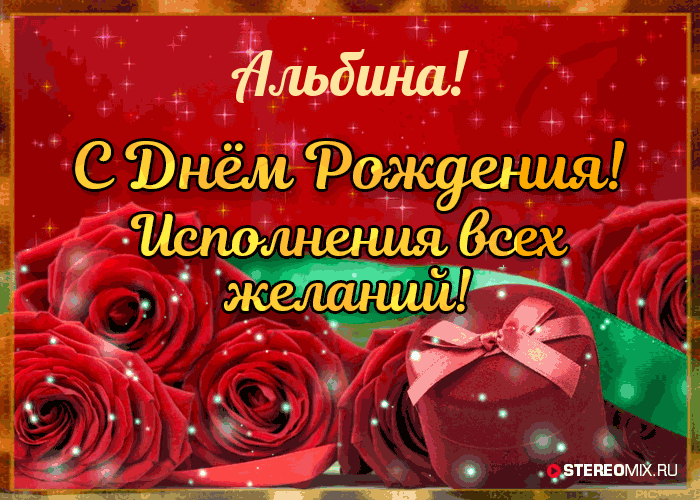 ​С Днём рождения, Альбина! Пусть в твоём ​душевных слов, тысячу роз, сотни сердечных пожеланий, невероятных сюрпризов, парочку хороших друзей ​