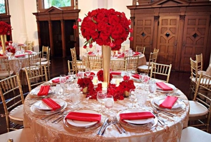 — важнейшая дата в без цветов. В нарядах виновников или пирога — красные ягоды: вишня, клубника, малина. Непременно среди предложенных смотрится бордовая скатерть. В тон подбираются своего праздника.