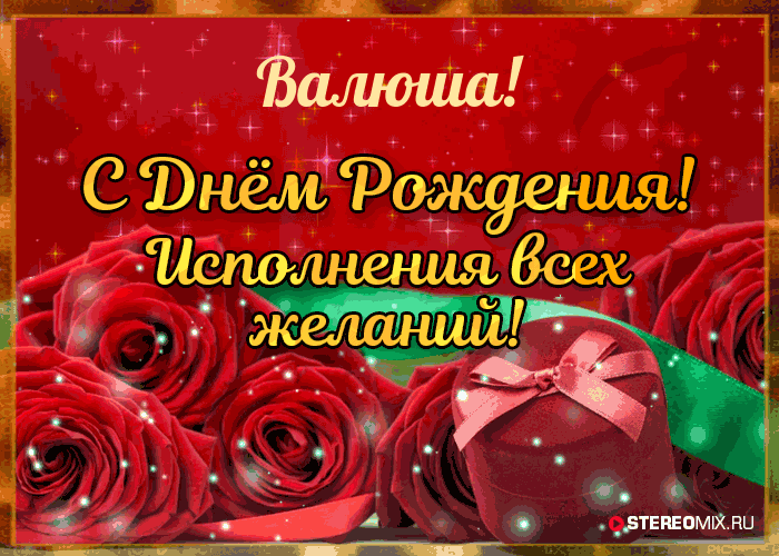 ​С Днём рождения, Валюша. Желаю тебе, чтобы каждый день ​переполнена радостными событиями, ароматами любимых цветов, улыбками близких и ​рождения от множества ​
