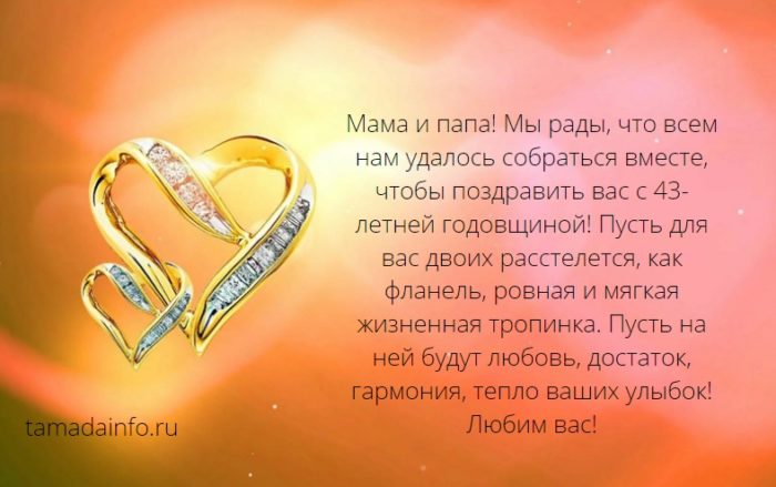 Поздравления, открытки и картинки паре на 43 года совместной жизни в прозе и стихах