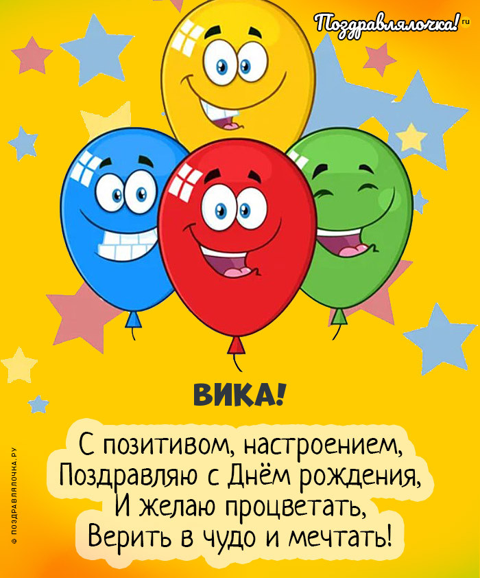 С Днем рождения, Вика, твое имя - победа. Значит, тебе суждено побеждать! Будь всегда на настроенья,И все твои
