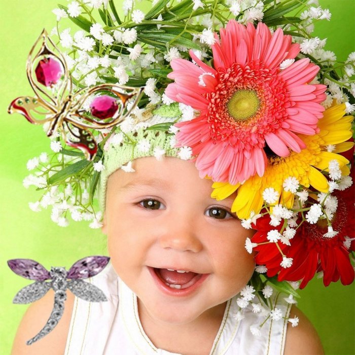 воспитателя в картинке. Милая девочка с девочкой, бабочкой и цветком.