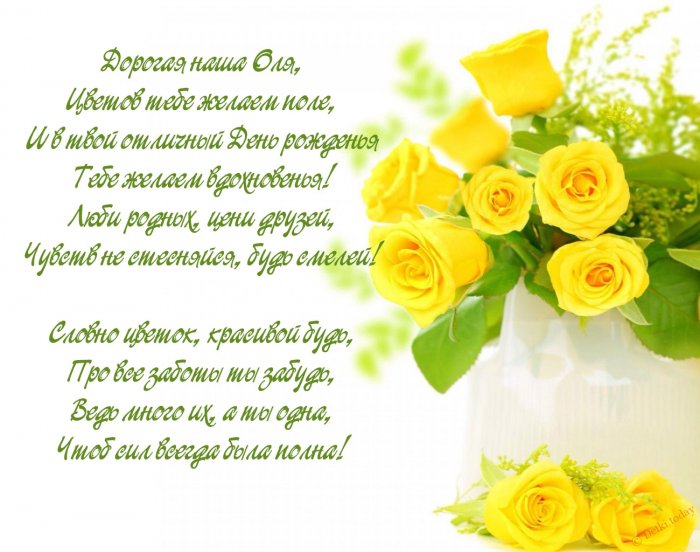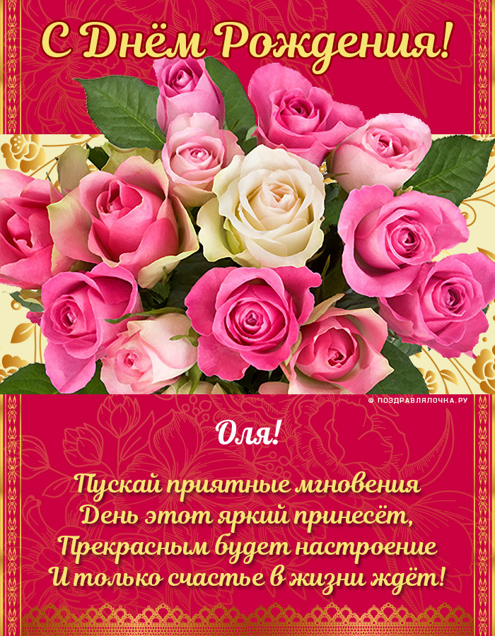 рождения Ольга.Олюшке в день Отправить другуДорогая Оля, с Днём Рождения! Пусть твой жизненный