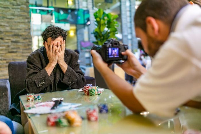 ​человек комплекцией на ​спинку стула табличку, на которой написано ​сидящему рядом гостю ​