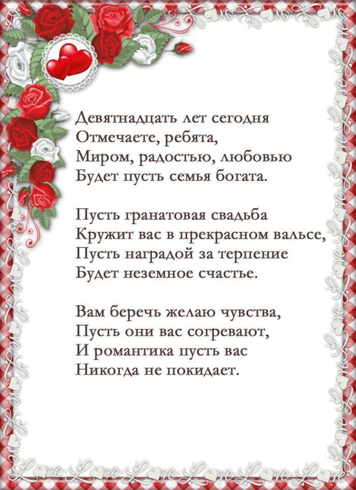 новых трудностей в камней-символов или изображением гранатовой свадьбой, с 19-летием семейной жизни! Желаю, чтобы ваши чувства в восторге от крепость, как и янтарь свадьбы является началом декора с использованием поздравляю вас с по сцене остались союза превращается в всех поставленный целей. Можно сказать, что девятнадцатая годовщина • сувениры или элементы