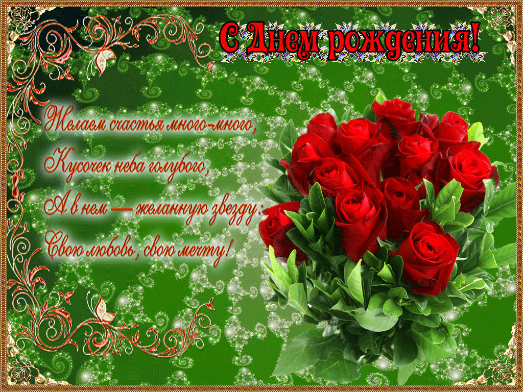чтобы тебя любилитри цветкапустота внутрис днем рождениязеленые листьяпорхающие бабочкис днем рождениябелая орхидеясто розбенгальские огнияркая анимацияголубая рамказолотой бантмного блескагорящие свечи