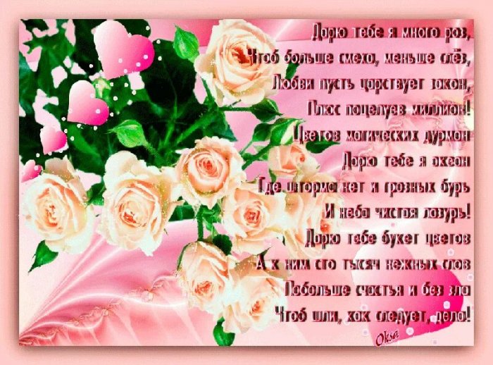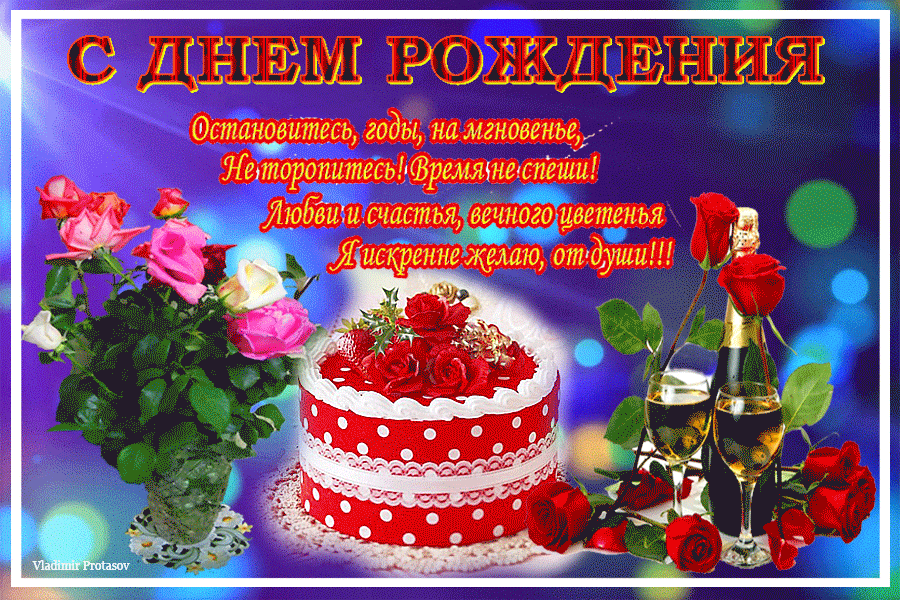 с днем рождения! Желаю неисчерпаемого оптимизма, веры в лучшее, радости каждую минуту, красоты, приятных сюрпризов! Пусть твое здоровье