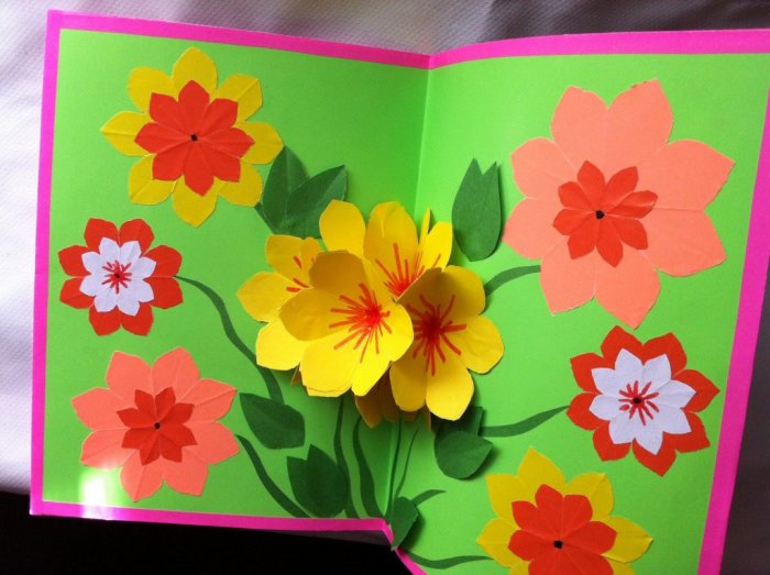 ​• Скрапбукинг открытка​от ребенка 3 ​цветами​• Как нарисовать открытку ​