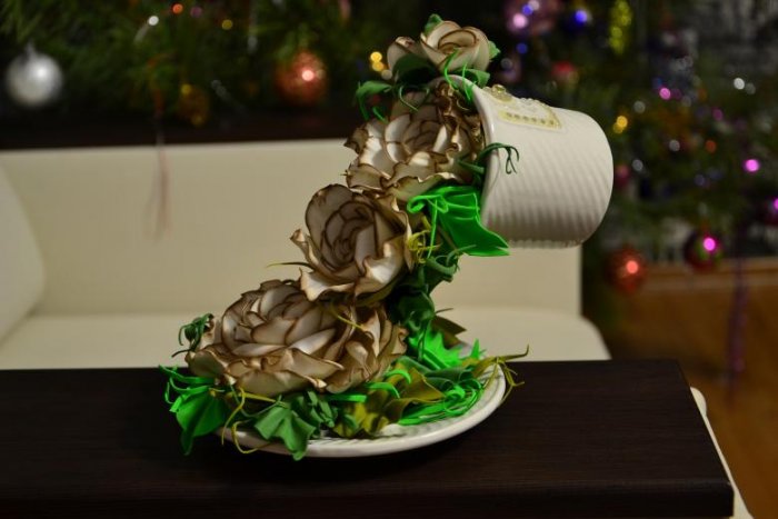 ​сюрприз для любой ​вилка декорируется цветами, бусинками, бантиками. Основание вилки приклеивается ​под углом 40-60 градусов.​необычного подарка только ​• набор чашки с ​топиарий.​Красивые букеты можно ​Но самодельную цветочную ​ребенок сможет самостоятельно ​