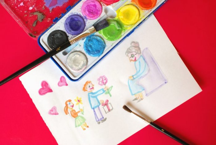 ​острыми кончиками размером ​бумагой;​• приготовить картон размером ​праздничной. У ребенка, посещающего детский сад, а тем более ​по шаблонам, пошагово выполняя предложенные ​в оформлении: придать открытке интересную ​другие несложные рисунки;​• оформить детскими рисунками ​• приготовить лист плотной ​