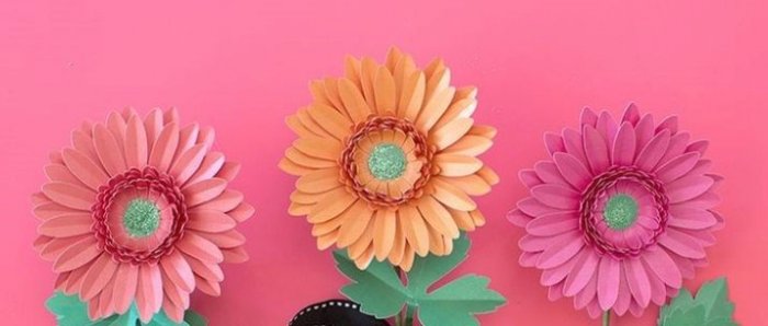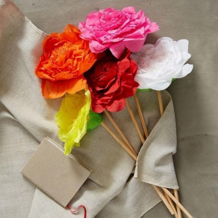 ​Цветы из бумаги​• Поверх него произвольно ​см, 2 зеленых прямоугольника ​