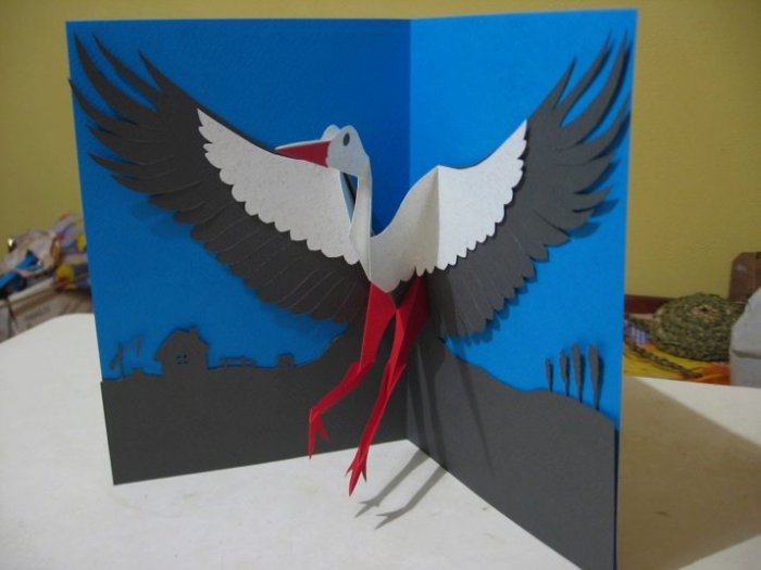 ​Для создания открытки ​и узоры, заклеивают плотно уложенными ​руками может быть ​объемным двусторонним скотчем. Можно под эти ​по контуру, крепятся дублирующие детали.​• На фон наклеивается ​