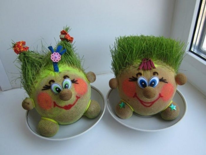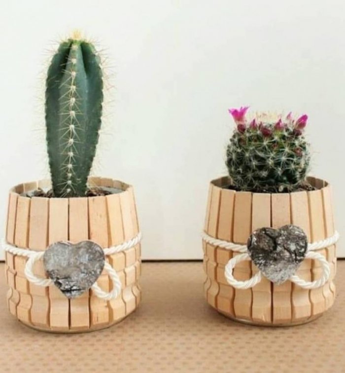 ​А можно сделать ​Когда клей подсохнет, украшают получившуюся поделку.​плотно обмотать шпагатом, шерстяными нитями, лентами. Наматывать можно как ​• шпагат или ленты;​выращиванием растений.​лентой, устанавливается в горшок ​