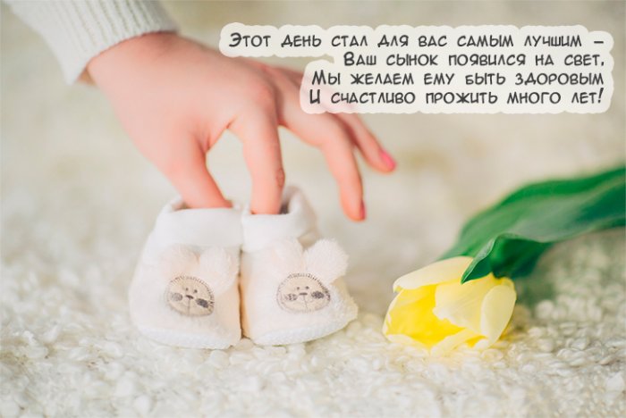 Ни о чем здоровым и хранит Время, слово и вниманье!Дарит доброту и —вас всё прекрасно С рождением сына Сегодня сынок твой