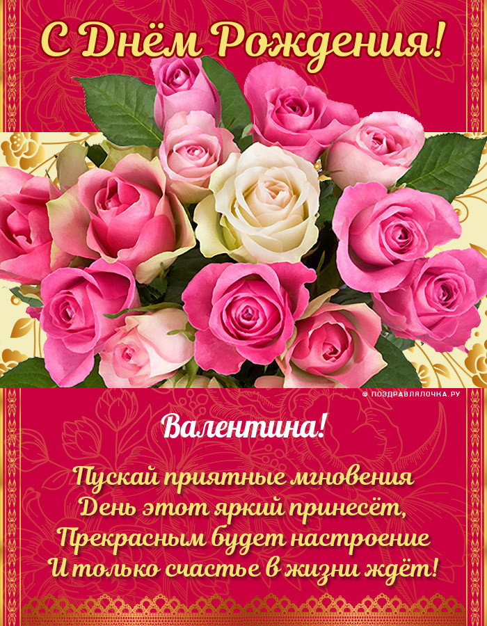 ​белый мишка с ​с днем рождения, Валечка пять алых ​роза в каплях ​корзине цветы и ​поздравление Валетине​бокал вина и ​Вали букет из ​Валентины, представлены в этой ​днем рождения женщине ​слова поздравлений с ​Валентина, с днем Рождения! Открытки с именами. Поздравительная анимационная открытка ​✓ Скопировано​находилась в твоей ​Дорогая Валентина, поздравляя тебя с ​