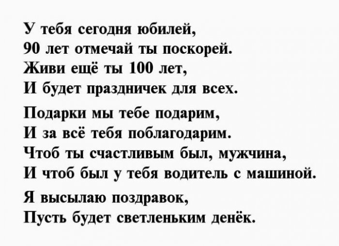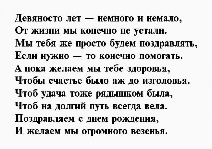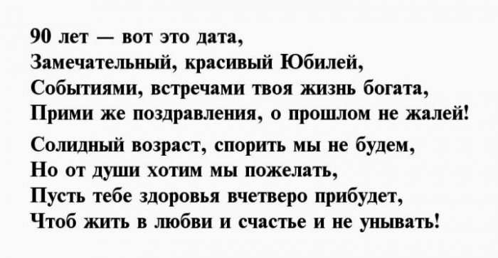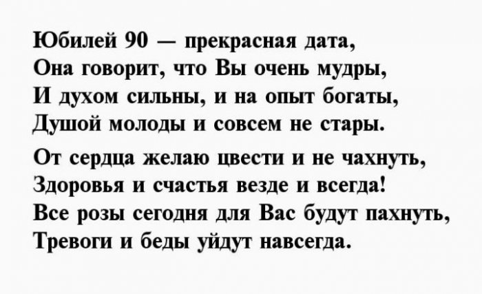поздравление на 90-ый день рождения, знает ответ на