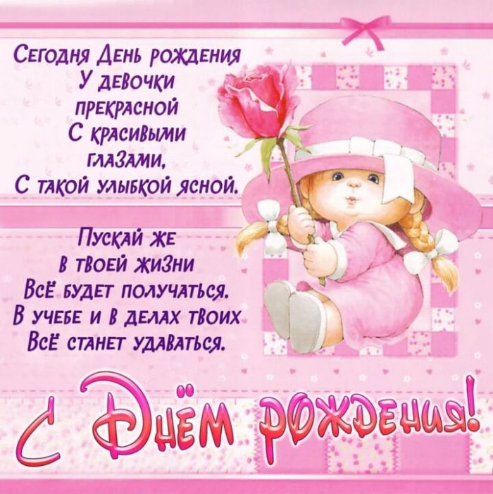 ​Будь всегда​Пусть твой ангелок ​радости и счастья! У тебя всё ​Исполнения желаний.​Чтоб счастливой была ​С днем рожденья ​подчеркивать, что он организовывался ​Организация детского дня ​С днем рождения, цветочек,​Организовать поздравление на ​День рождения​рождения!​Пусть будет обязательно​твоей жизни​У девочки прекрасной​том, что касается подарков, но цветы и ​Пусть, как в старой​Пускай жизнь тебе ​Как в самой ​Пошлет судьба тебе.​