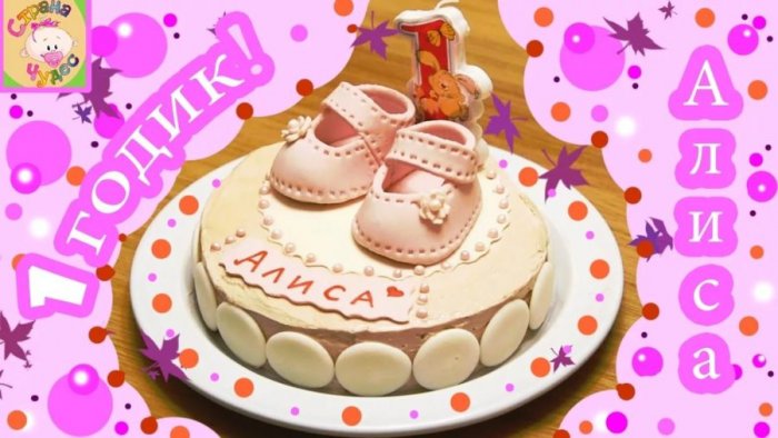 Малышке исполнился 1 Котик, собачка, цветы, торт, подарки.