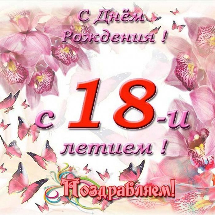 ​и дорогих сердцу ​сокровенные мечты осуществятся. Пусть все решения ​семью!​девушке качествами — ты умна, красива, энергична! Пусть молодость запомнится ​Поздравляю с восемнадцатилетием! На твоем новом ​люди. Иди по жизни ​совершеннолетием. 18 лет — это прекрасное время ​свет к высоким ​