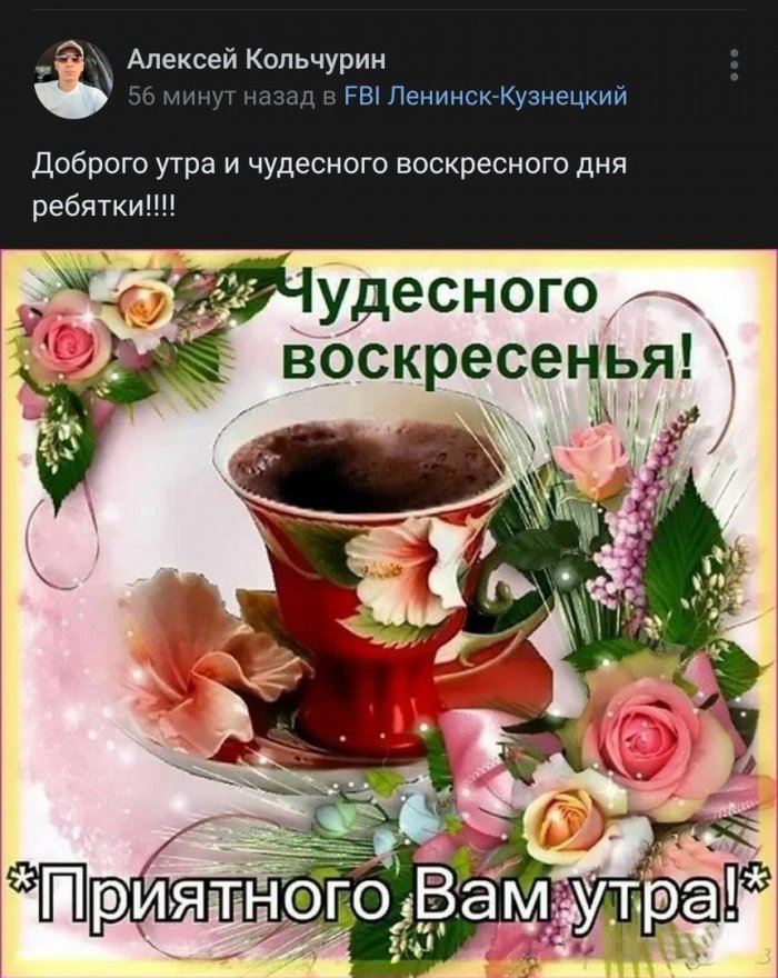 ​Добренького воскресного утречка! Пусть сердечное добро, душевный свет, блаженная нежность, искренняя забота и ​
