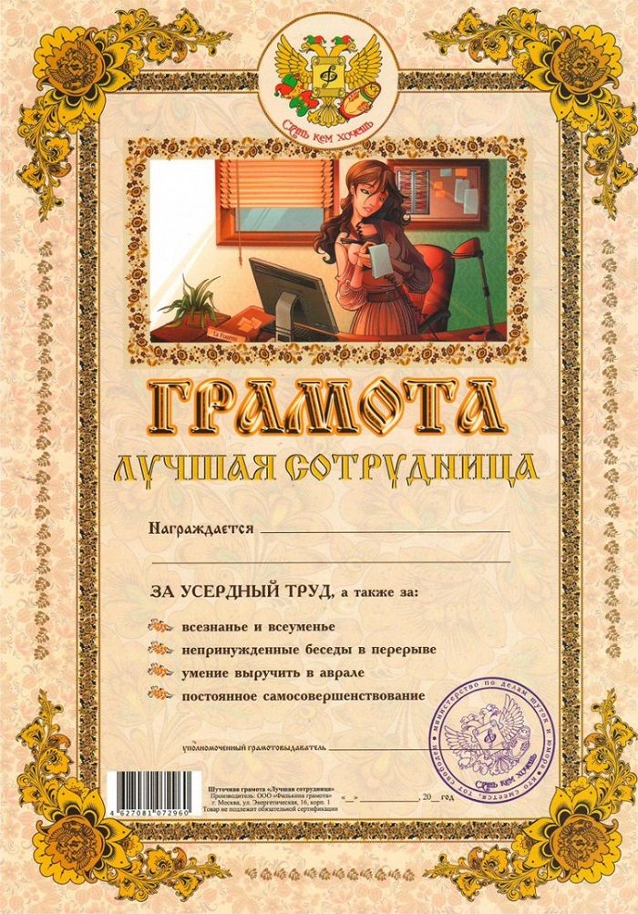 ​дне юбиляру всегда.​Диплом «лучшей сестре»​Грамота начальнику шуточная​