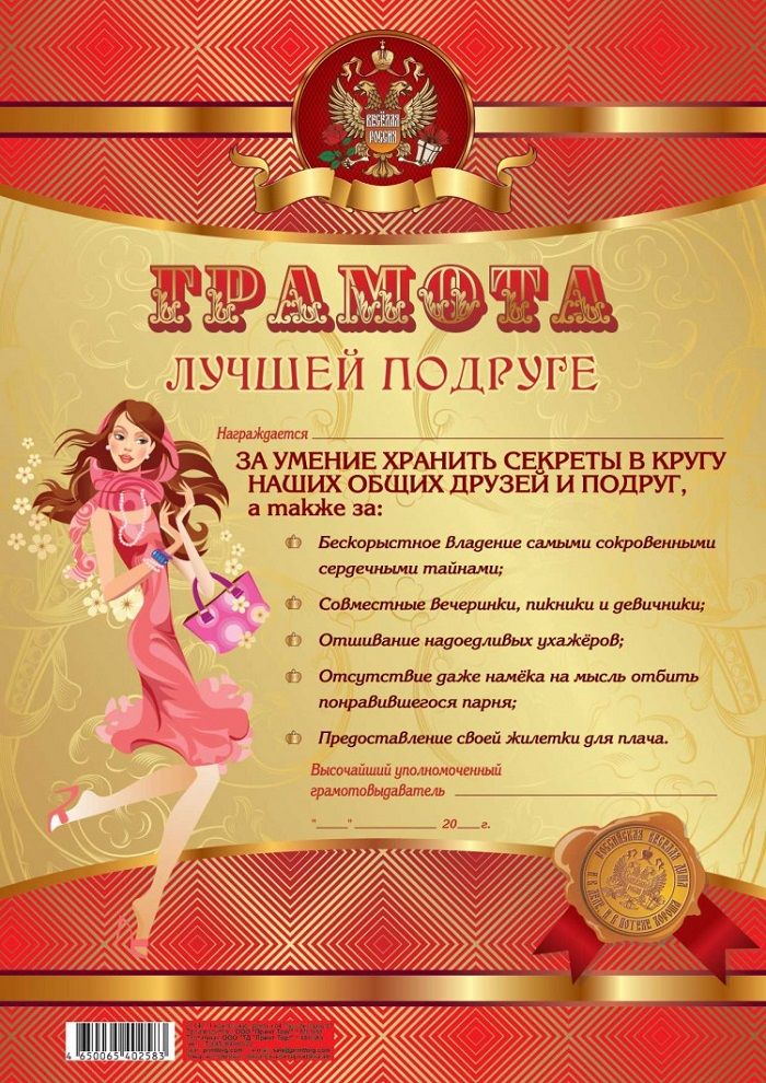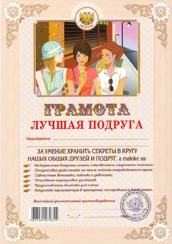 ​Прикольные грамоты​Диплом лучшей подруге​Ищите подарок для ​