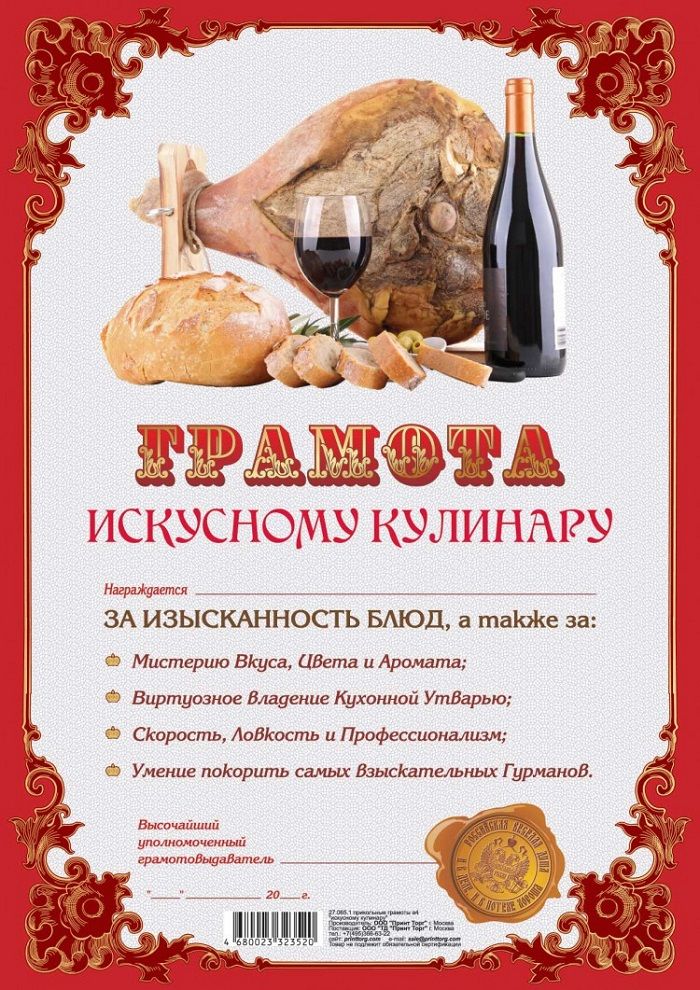 ​Грамота юбиляру 55 ​Диплом лучший шеф​