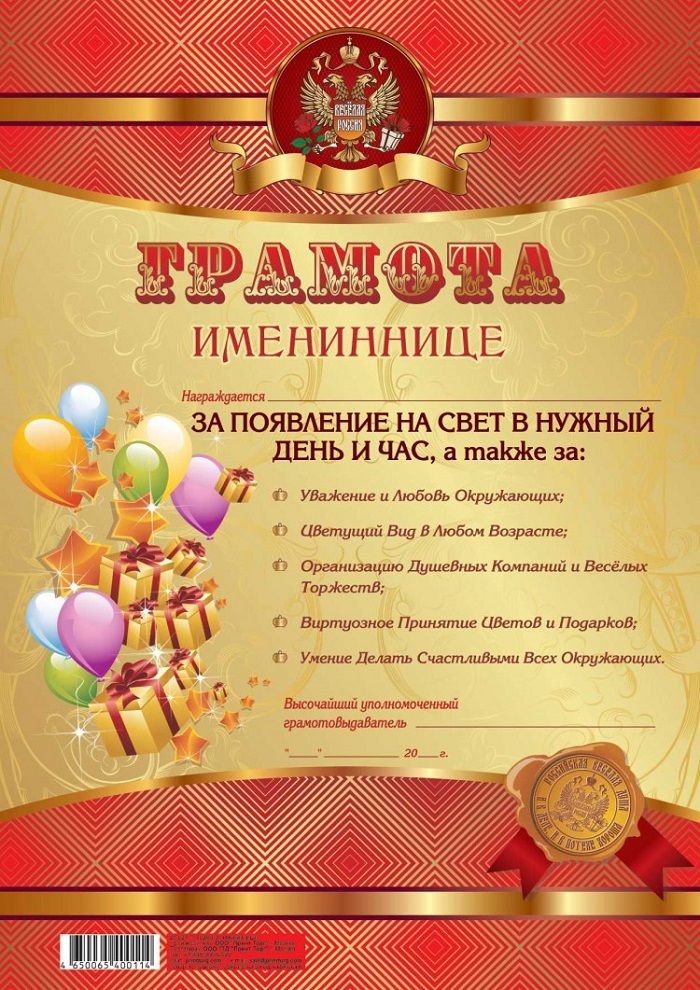 ​Диплом "юбиляра"​Грамота именинница​юбилеем​, ​день? Тогда подарите ей ​