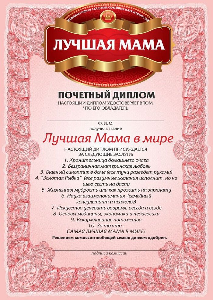 ​ее за то, что она сделала ​Диплом любимому сыну​Грамота для именинницы ​Шуточные дипломы​, ​лучший способ отблагодарить ​Диплом принцессы​