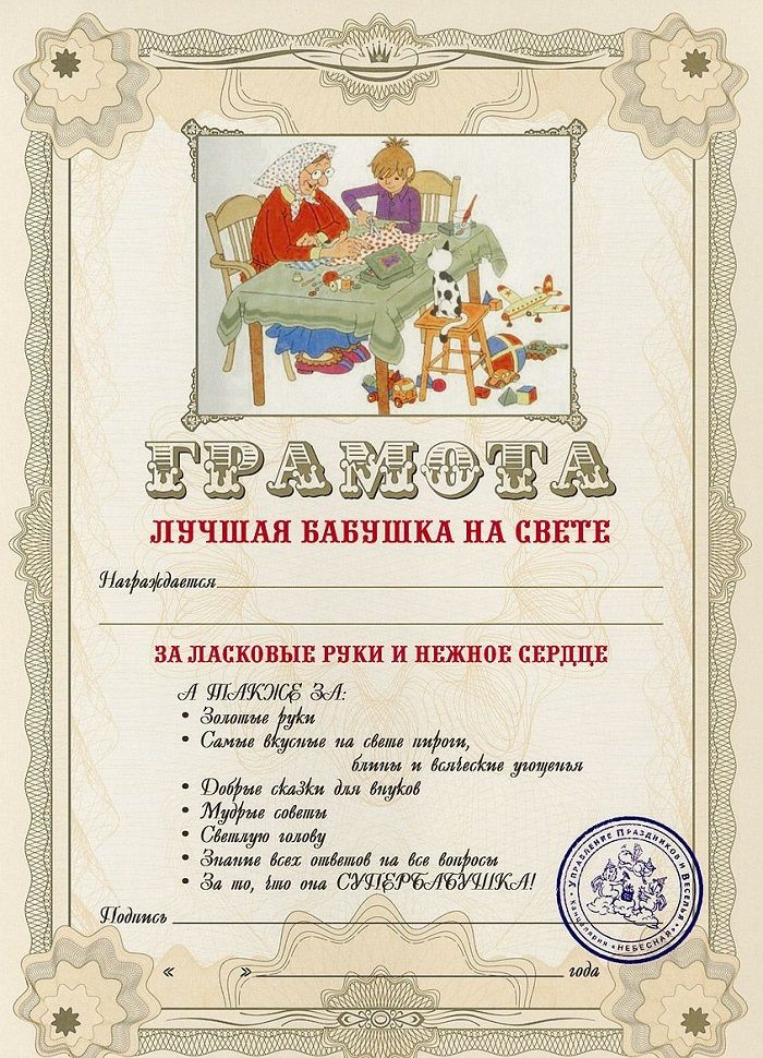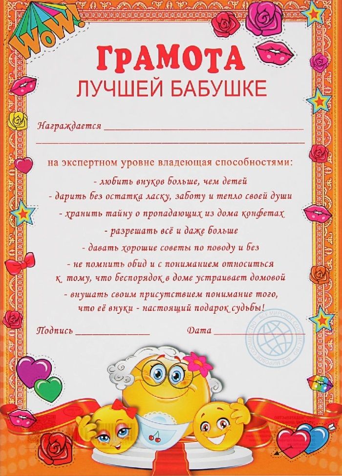 ​подруге на день ​вам ярко и ​юбилеем​Диплом лучшей бабушке​Шуточные грамоты светлая ​