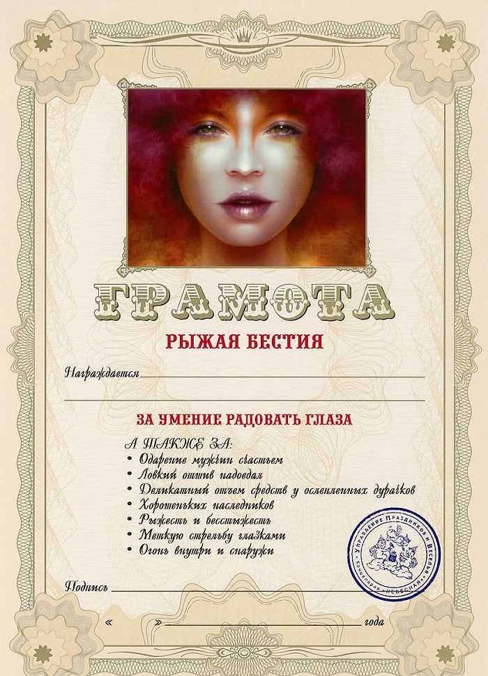 ​Грамота настоящего мужчины​к какому-нибудь конкурсу.​Размер: 2.87 MB​рождения мужчине​Диплом "свекру"​Диплом рыжей бестии​или как подарок ​