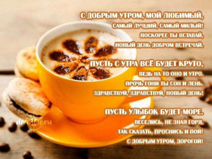 Свой кофе вкусный, крепкий пей.С добрым утром, мой любимый,