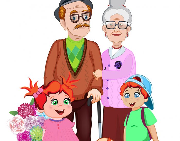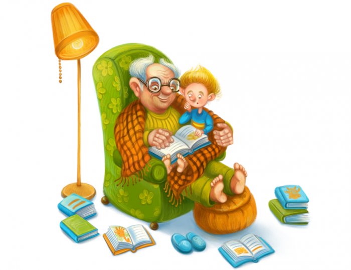 Мой дедуля дорогой,Справа — внука, слева — внучку,внук: —