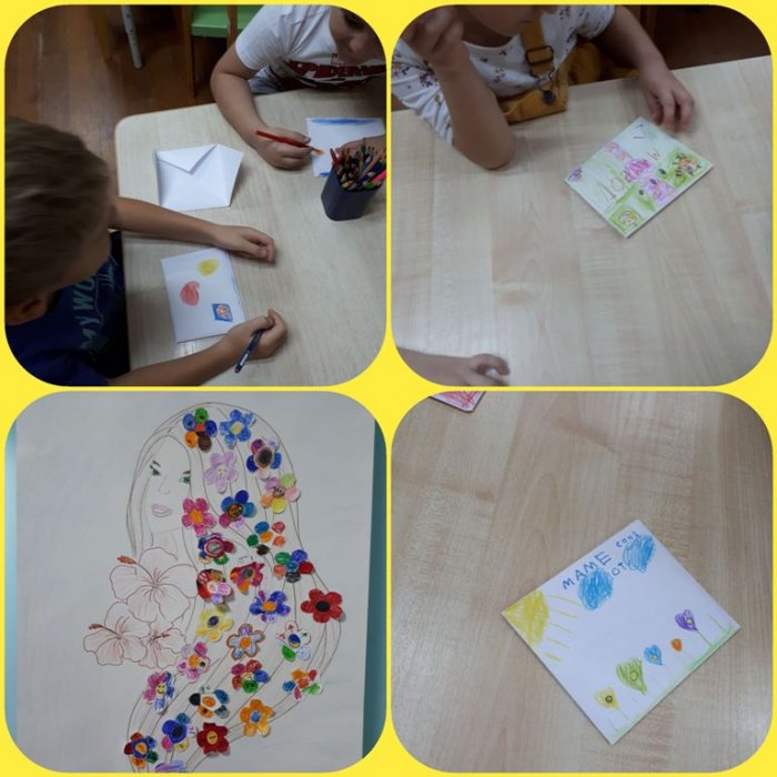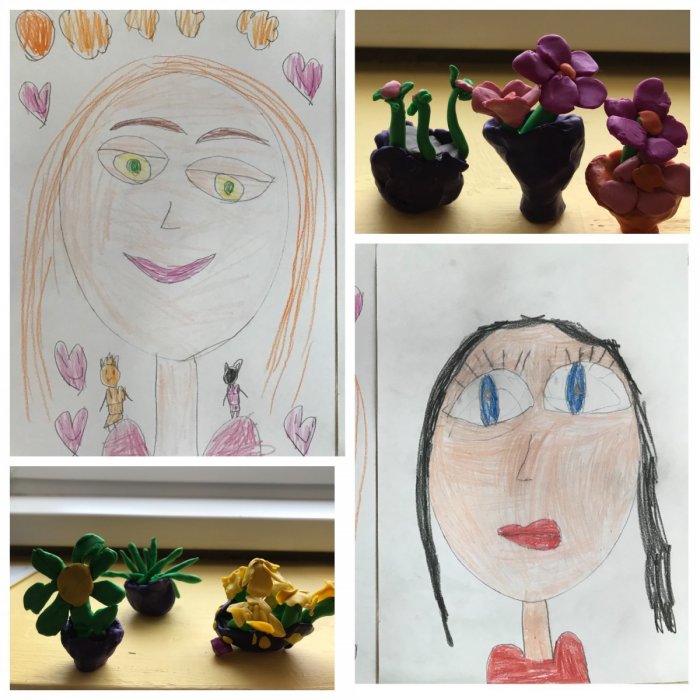 к этому празднику: готовили подарки (вазочки с гиацинтами), делали поздравительную газету, репетировали поздравление (очень трогательный стих День Мамы, какой чудесный нежный человеке в их