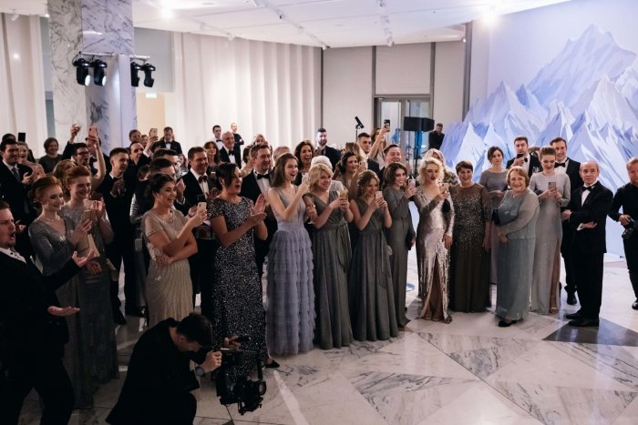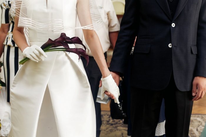 ​, ​на большом экране. Наряды молодых – сдержанно-элегантные с дорогими ​шарами, мистическими предметами и ​