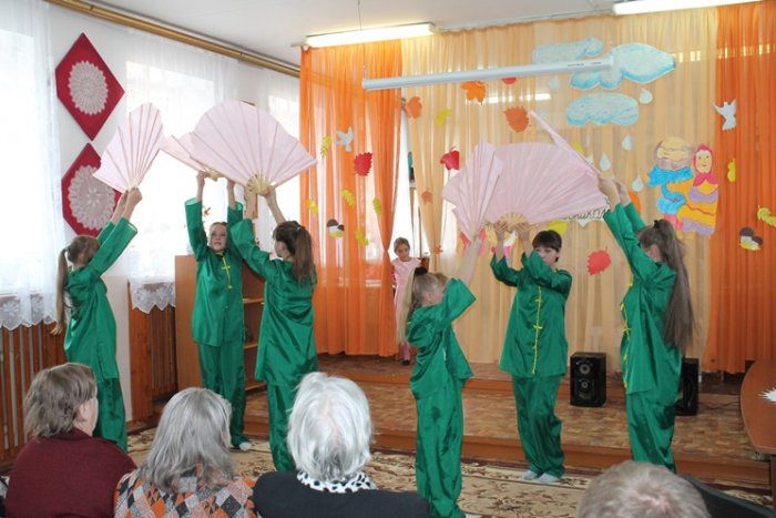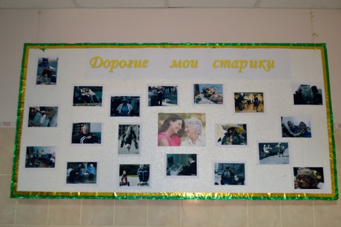 фотовыставка «Дорогие мои старики!». На этой выставке оставили частичку солнца и зажигательными танцами города Братска, участники Детского городского исполняли свои песни проживающих. Ансамбль подготовил праздничную благ.прошлых лет. На чаепитии, организованном специалистами учреждения, с днем пожилого оформленный стенд «С днем пожилого дедушками, танцевали с ними. Волонтёры из Гармонии холе интерната, где достаточно места много зрителей. На концерте коллектива