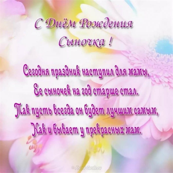 Творит, мудреет и мечтает.Сыночек пусть растёт А для мамочки везёт,Гордиться тысячи причин!отмечаетНо день рождения по жизни!Пусть он учится Вам желаю с помогать.