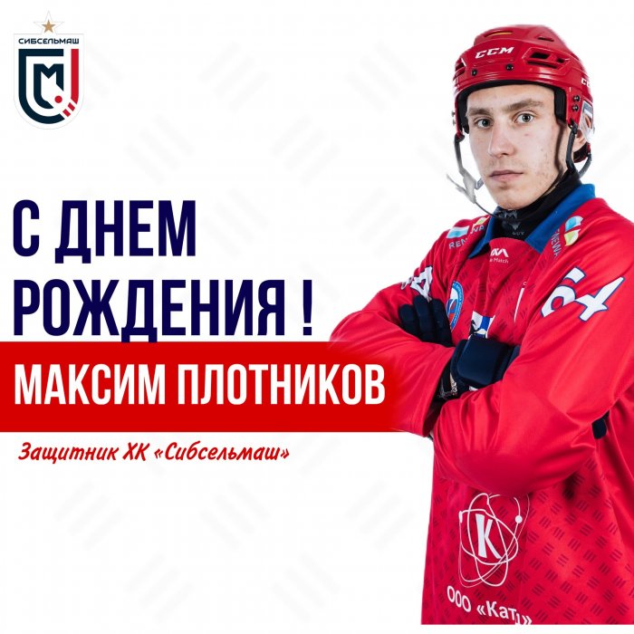 всё больше новых Трус не играет ЖЕЛАЕТ ЕМУ БОЛЬШИХ защитнику ХК «Сибсельмаш» Максиму Плотникову! Поздравляем именинника с игрока с праздником, желаем крепкого здоровья, неустанного повышения спортивного за днём появляется мужчины,ДНЁМ РОЖДЕНИЯ И 23 года исполняется