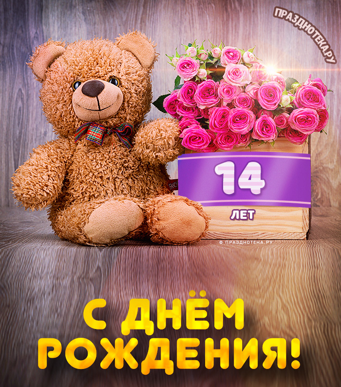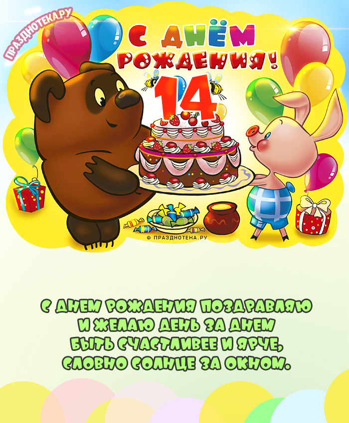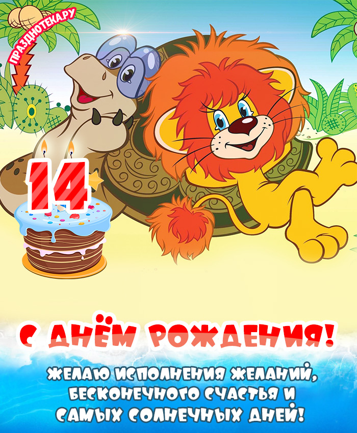 Прикольная открытка с Днём Рождения 14 лет
