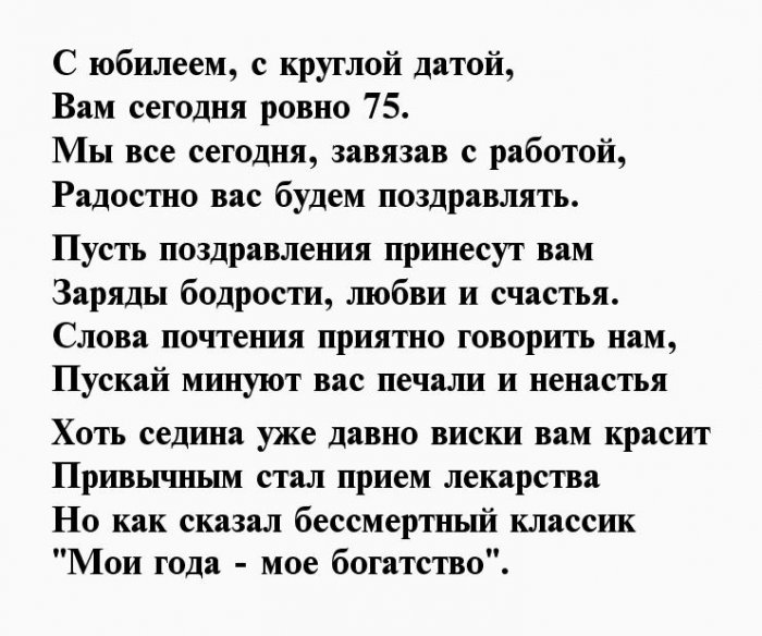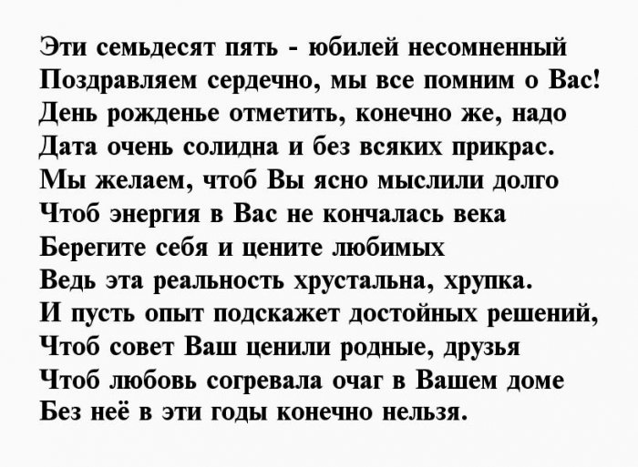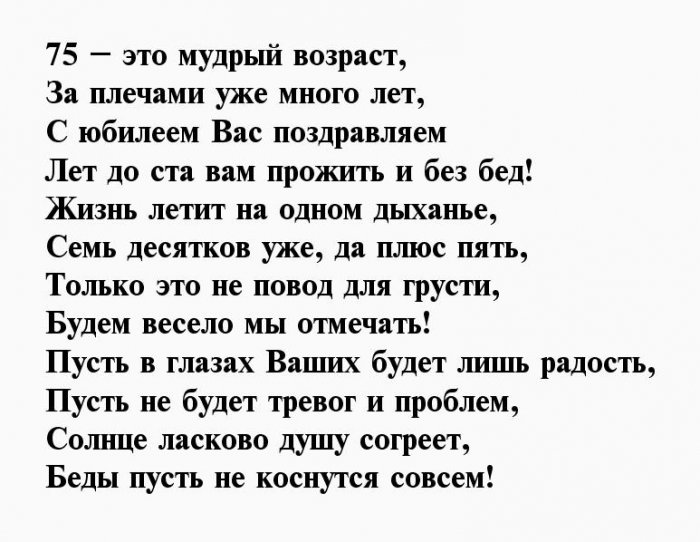 Вам исполнилось 75 жизнь всегда прекрасной,