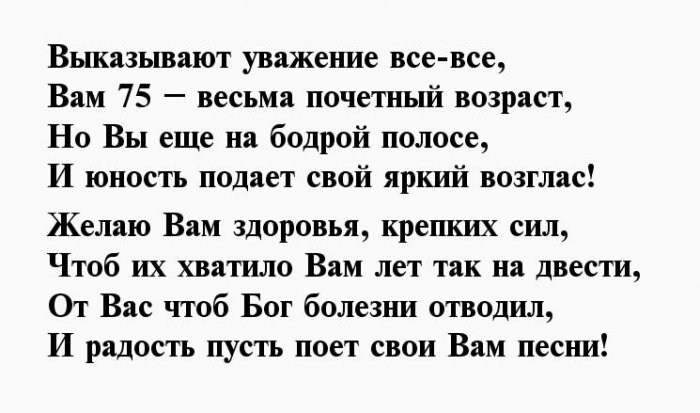 Вам 75 – весьма почетный возраст,красота.