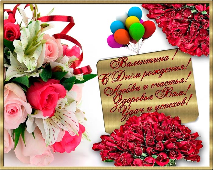 Красивые открытки, картинки с Днем рождения Валентине. Женщине, девушке, девочке. Валентина. Часть 1-ая.