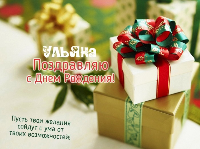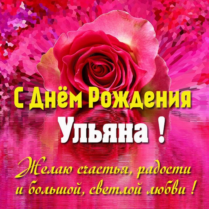 поводу открыток?Ульяна! Поздравляю тебя с днем рождения и желаю много радости, здоровья, удачи и любви. Будь всегда счастливой!