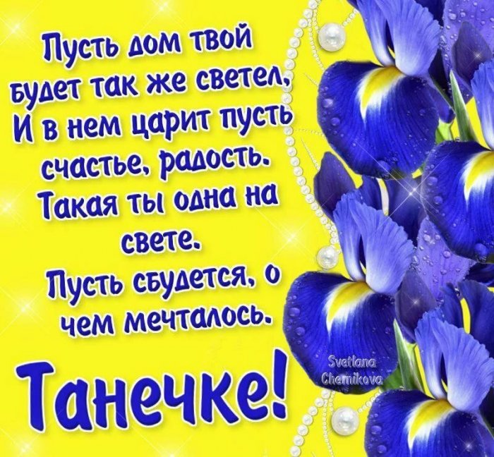С Днем рождения, Таня! Хочу пожелать исполнения самых заветных желаний! Оставайся такой же красивой, энергичной и жизнерадостной!
