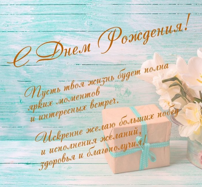 Сегодня – твой день, и я желаю, чтобы он принес много ярких эмоций, приятных сюрпризов и прекрасных подарков.